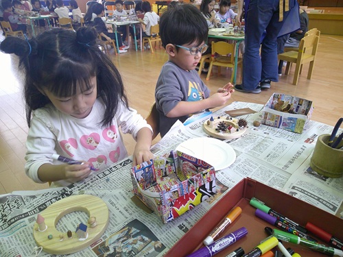 「森へいこうよ」自然環境学習事業の一環として、4才児さんが木工クラフトを行いました。