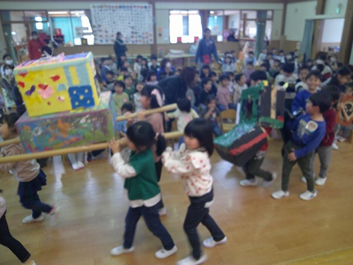 3学期はじめの会には縁起物のお神輿とお獅子様が登場!!